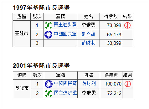 請問蘇治芬縣長支持的李進勇是新人嗎?李進勇1992年在基隆市當選第二屆立法委員、1995年當選第三屆立法委員。1997年當選基隆市第十三屆市長,成為首位民進黨籍的基隆市長;2001年競選連任失敗,得票數比1997年還少1186票;而2001年藍票數竟然比1997年多1795票勝出。所以李進勇已是政壇老鳥,怎麼會是新人?