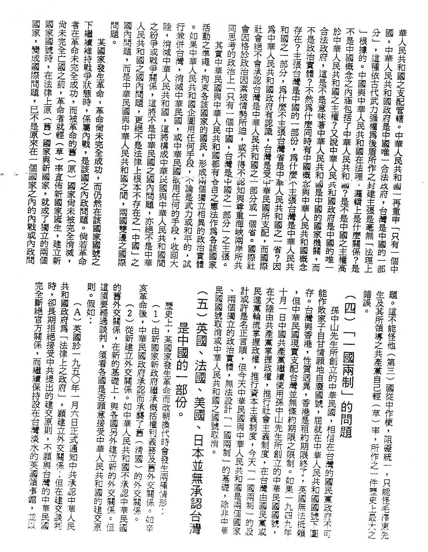 對中共「台灣問題與中國的統一問題」白皮書論點的公開辯駁