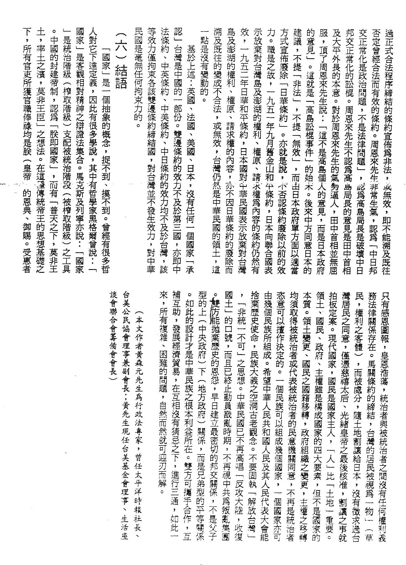 (黃森元/美國洛杉磯Formosa真善美社會員、行政法專家)