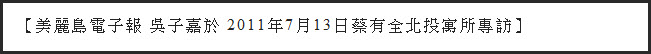 【美麗島電子報 吳子嘉於 2011年7月13日蔡有全北投寓所專訪】