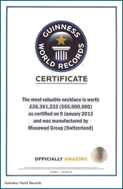Awarded Most Valuable Necklace in the world—Guinness World Records 2013. L’Incomparable features the world's largest internally flawless diamond—the 407.48 Incomparable Diamond.
