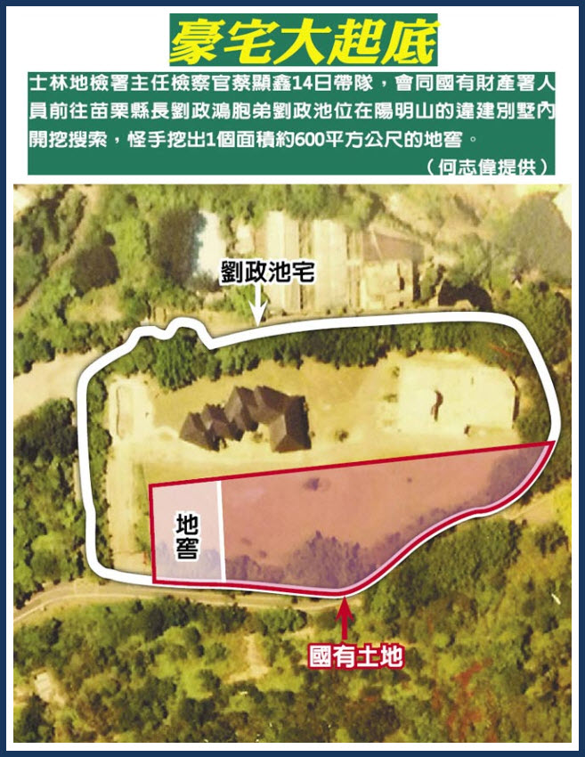至於劉政池開挖的地道和地下室到底做何用途?檢調研判該處在溫泉帶,溼氣很重,硫磺水氣容易腐蝕物品,應不是當成珍貴物品的收藏室。