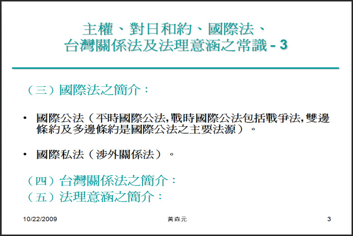 主權、和約、國際法、臺灣關係法及法理的意涵